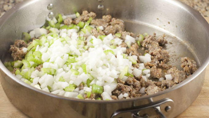 Step3Add celery and onions to pork and continue to cook for another 3-4 minutes until veggies soften.