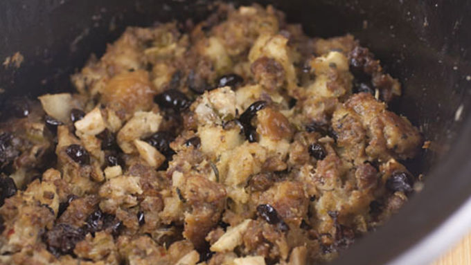 - Some people turn into “Stuffing Police” on Thanksgiving Day. They expect the same stuffing every single year. Normally, these stuffing police also require that the stuffing be actually stuffed in a turkey. I don’t love this. For one, it almost always leads to an overcooked bird. By the time you heat up the bird and the stuffing to a safe temperature, some parts of the bird are completely toast. So a few years ago I started moving to a stuffing version that’s cooked outside of the bird in a normal baking dish. I found this stuffing to actually be a lot more flavorful – and my turkey turned out better because I wasn’t worried about the bird/stuffing combo. Of course, the problem then becomes oven space. With rolls, pies, casseroles, and a huge bird all needing their oven time, it can sometimes be hard to squeeze in the stuffing. Enter crockpot stuffing. This is honestly the best stuffing recipe I’ve ever eaten. Sometimes I just bake it in a few large casserole dishes, but it works perfectly in the crockpot also. Pile it high and deep on a plate and you’ll be in for some of the best stuffing you’ve had. Promise. I’ve converted at least three Thanksgiving feasts from the traditional stuffing to this variety. Once you try it, you’ll never go back!