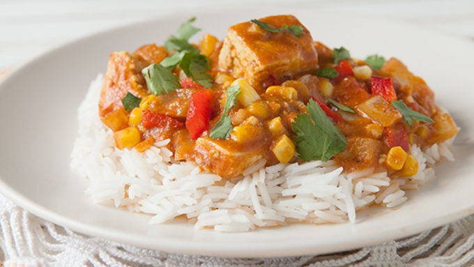 var configuration = {"title":"Slow-Cooker Tofu Curry","introduction":"Looking for a meat-free dinner idea? Let your slow cooker do the work for you with this easy tofu curry. Not only is it made from affordable ingredients making it a weeknight-win, but it’s also easy to adapt to your desired level of spiciness.","servingSize":"1 Serving","image":{"small":{"media":"(min-width: 0px)","src":"https://mojo.generalmills.com/api/public/content/eFtKswlMZk2jmEN_VJSaWA_webp_base.webp?v=3366c05b\u0026t=e724eca7b3c24a8aaa6e089ed9e611fd"},"medium":{"media":"(min-width: 500px)","src":"https://mojo.generalmills.com/api/public/content/eFtKswlMZk2jmEN_VJSaWA_webp_base.webp?v=3366c05b\u0026t=191ddcab8d1c415fa10fa00a14351227"},"large":{"media":"(min-width: 767px)","src":"https://mojo.generalmills.com/api/public/content/eFtKswlMZk2jmEN_VJSaWA_webp_base.webp?v=3366c05b\u0026t=191ddcab8d1c415fa10fa00a14351227"},"alt":"Slow-Cooker Tofu Curry"},"contributor":{"label":"by:","name":"Macheesmo","profileUrl":"/contributors/macheesmo","displayDate":{"label":"Updated","date":"Jan 22, 2020"}},"ingredientGroups":[{"ingredients":[{"quantity":"1","description":"lb firm tofu, cubed"},{"quantity":"1","description":"medium sweet onion, chopped"},{"quantity":"1","description":"medium red pepper, chopped"},{"quantity":"1","description":"medium yellow pepper, chopped"},{"quantity":"3","description":"cloves garlic, minced"},{"quantity":"2","description":"inches fresh ginger, minced"},{"quantity":"2","description":"cups sweet corn"},{"quantity":"1","description":"tablespoon garam masala"},{"quantity":"1/4","description":"cup red curry paste"},{"quantity":"1","description":"teaspoon kosher salt"},{"quantity":"1","description":"can (15 oz) coconut milk"},{"quantity":"2","description":"cups vegetable stock"},{"quantity":"1","description":"(6-oz) can tomato paste"},{"quantity":"","description":"Basmati rice, for serving"},{"quantity":"","description":"Cilantro, for garnish"}]}],"steps":[{"description":"Cube tofu into 1/2-inch cubes and add to a medium or large slow cooker.","stepShotImageUrl":"//rms-media-prod.generalmills.com/0280af6a-14d6-4d13-ace6-73d70a965728.jpg"},{"description":"Roughly chop onion and peppers. Mince the garlic and ginger finer.","stepShotImageUrl":"//rms-media-prod.generalmills.com/7d978be3-5fdd-49cd-8b61-f6782e22b859.jpg"},{"description":"Add to slow cooker along with corn, spices, coconut milk, vegetable stock, and tomato paste. ","stepShotImageUrl":"//rms-media-prod.generalmills.com/f6e3a001-4c85-4539-9f7b-78fb3e092e9c.jpg"},{"description":"Stir together. Cook curry on low heat for 5-6 hours, or on high heat for 3-4 hours.","stepShotImageUrl":"//rms-media-prod.generalmills.com/468bf1eb-4b38-4024-a256-c9aa48648b48.jpg"},{"description":"Taste the curry and adjust spice levels to your liking. Serve over basmati rice garnished with fresh cilantro."}],"tips":[{"title":"","description":"When you think of curry, maybe you think of your favorite Indian restaurant with a large pot somewhere in the back that has been simmering for hours and hours. Good news! You can make a restaurant-quality curry in your slow cooker while you’re away at work. This tofu curry is totally animal product-free, meaning it’s a dinner that everyone can enjoy.","category":"Editorial","tipShots":[]},{"title":"","description":"When chopping your vegetables, dice them in a uniform manner so they cook consistently. ","category":"Techniques","tipShots":[]},{"title":"","description":"Depending on the brand, ¼ cup of red curry paste will make a mild curry. You can always add more curry paste after the curry has cooked if you prefer a spicier dish.","category":"Recipe/Ingredient Facts","tipShots":[]},{"title":"","description":"This tofu curry also serves well with flatbread rather than basmati rice.","category":"Serving Suggestions/Menu","tipShots":[]},{"title":"","description":"This recipe has been Kitchen Tested.","category":"Kitchen Tested","tipShots":[]}],"kitchenTips":[{"title":"","description":"When chopping your vegetables, dice them in a uniform manner so they cook consistently. ","category":"Techniques","tipShots":[]},{"title":"","description":"Depending on the brand, ¼ cup of red curry paste will make a mild curry. You can always add more curry paste after the curry has cooked if you prefer a spicier dish.","category":"Recipe/Ingredient Facts","tipShots":[]},{"title":"","description":"This tofu curry also serves well with flatbread rather than basmati rice.","category":"Serving Suggestions/Menu","tipShots":[]}],"additionalContent":[],"faq":[],"tipCategories":[{"categoryName":"Editorial","heading":"More About This Recipe","cssClass":"recipePartStory","expandOnInit":false,"expandText":"More +","collapseText":"Less -","expandEventName":"","collapseEventName":"","image":"","tips":[{"title":"","description":"When you think of curry, maybe you think of your favorite Indian restaurant with a large pot somewhere in the back that has been simmering for hours and hours. Good news! You can make a restaurant-quality curry in your slow cooker while you’re away at work. This tofu curry is totally animal product-free, meaning it’s a dinner that everyone can enjoy.","category":"Editorial","tipShots":[]}],"isExpandable":false},{"categoryName":"Kitchen Tested","heading":"More About This Recipe","cssClass":"recipePartStory","expandOnInit":false,"expandText":"More +","collapseText":"Less -","expandEventName":"","collapseEventName":"","image":"","tips":[{"title":"","description":"This recipe has been Kitchen Tested.","category":"Kitchen Tested","tipShots":[]}],"isExpandable":false}],"nutritionInfo":{"configuration":{"showAsTable":false,"noNutritionInformationAvailableMessage":"No nutrition information available for this recipe","poweredByText":"\u003cp\u003eNutrition information for this recipe is estimated using a leading nutrition calculation application, but is an estimate only. Actual nutrition values will vary based on the exact ingredients 