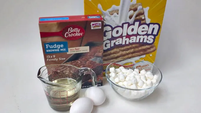 Mini fudgy brownies topped with toasted marshmallows and Golden Grahams™ cereal!
