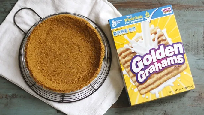 Here’s the deal-io with this pie: There’s a crushed Golden Grahams cereal crust, topped with a layer of fudgy fudge goodness, topped with a layer of classic pumpkin pie filling, topped with marshmallows that are browned and toasted to perfection. I know. I’m drooling over here, too.