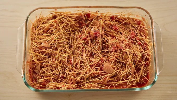 Sopa Seca is a Mexican noodle casserole that's easy to make and totally delicious to eat. This dish gets its deep flavor from toasting pasta in a frying pan before cooking it in sauce.