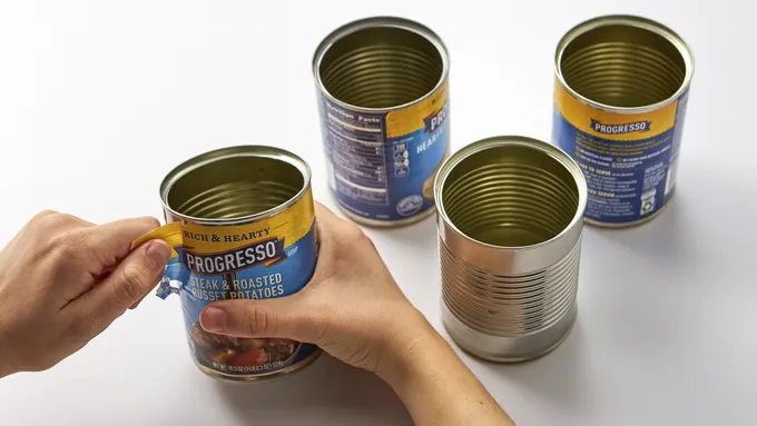 Step1Heat oven to 350°F. Generously spray the inside of 4 empty 18 oz. Progresso™ soup cans (wrappers removed) with cooking spray and place on a baking sheet.