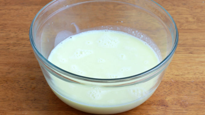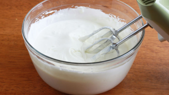 Step3Pour the mixture into a large bowl, cover with plastic wrap and chill overnight. Don't worry if you think the mixture looks a little yellow at this stage, it will whiten beautifully once it's chilled and whipped.