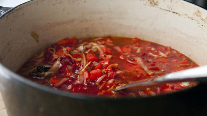 - This warm winter soup has a surprising kick. A perfect pick me up on cold evenings. Good news: This spicy borscht soup will not only warm your soul, but if you go full force with the spices, you’ll be running at deadly speeds for your closest glass of milk. This soup, at its base, is peasant food. It costs almost nothing to make and will feed a crowd. It can include proteins like beef, but I like to keep it veggie-packed. Plus it's insanely easy to make. This is, no joke, the hardest part of this recipe is chopping the vegetables. This will probably take around 20 minutes if you are a slow chopper, but after this the soup cooks itself! Now let’s talk spices. Since this is a spicy soup, I went big on the spices. I used dried arbol chiles but those might be kind of hard to find, so I wrote red pepper flakes into the recipe – which will add some nice base heat. Now, if you want to get a little crazy, find yourself a dried habanero pepper and toss that into the mix. Totally optional, but it’ll elevate the spicy levels substantially. Serve the soup with some thick Yoplait Greek yogurt and top it with a few sprigs of fresh dill. This will keep you warm all winter.