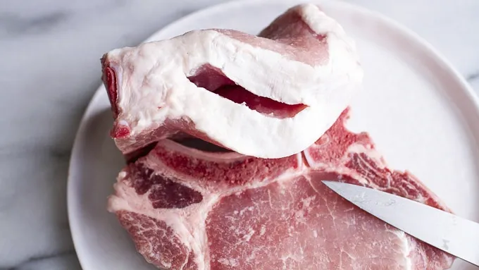Step2Insert a sharp paring knife into the curved side of each pork chop to make a deep pocket, about 2 inches wide. Soak the chops in the brine for 5-10 minutes.