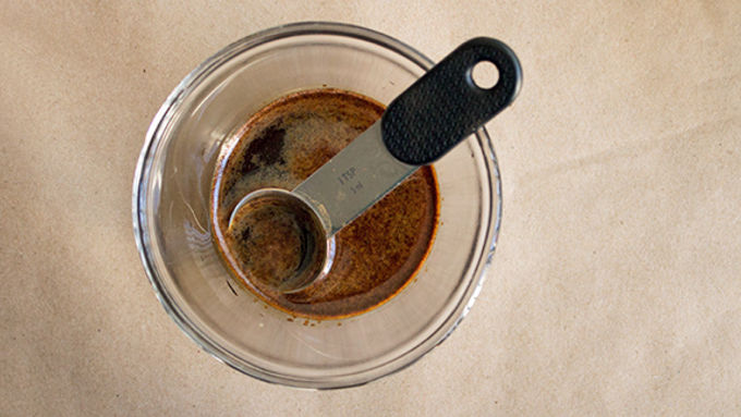 Step1Dissolve instant espresso powder in the 2 tablespoons warm water, then combine everything except the chocolate, heavy cream, and pinch of cayenne in a large bowl and mix until combined.