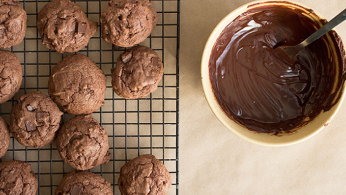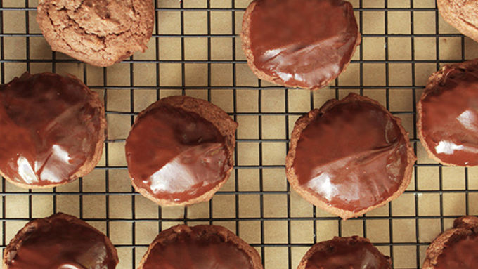Step4Dip the tops of the cookies in the chocolate ganache then place back on wire rack to cool completely.