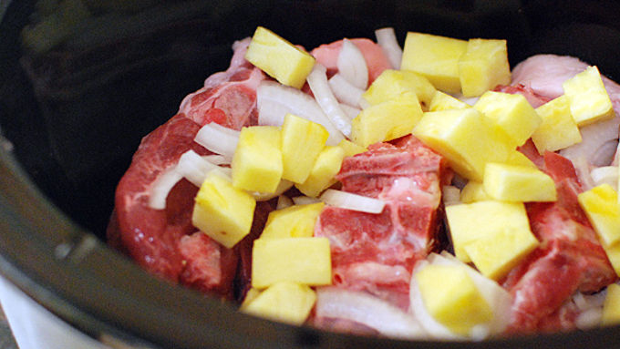 Step1Put the pork ingredients into the slow cooker and cook about 6 hours until the pork is fork tender and easy to shred.