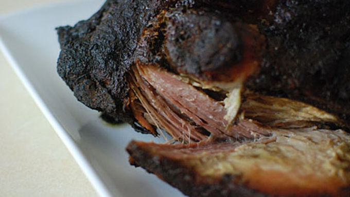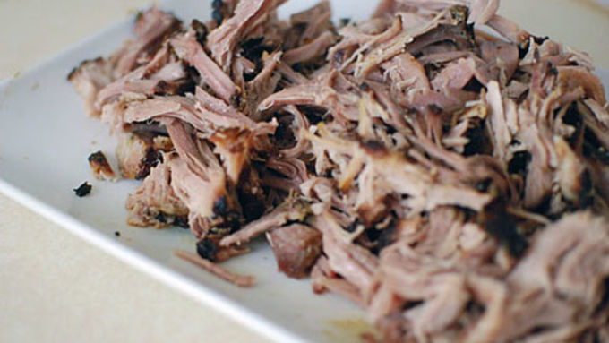Step2Place the pork with all the marinade in an oven safe pot. Bake with the lid off for about 6 hours at 300°F. You could also use the slow cooker for this part, but you won't end up with the nice browned edges.