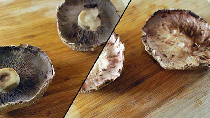 Step4Grill the mushrooms (meat side down) on low and with the grill cover down for about 20 minutes, until well browned and just about cooked through. Flip the mushrooms and cook another 7 or so minutes until the mushrooms are tender.