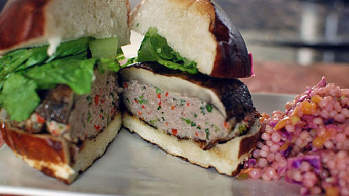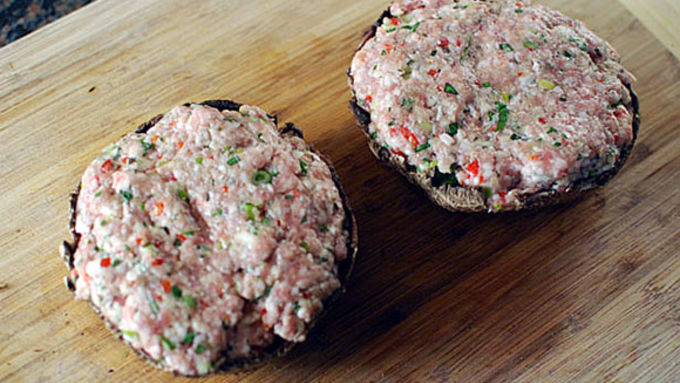 A spicy and flavorful pork patty stuffed into a nice, big portabella mushroom.