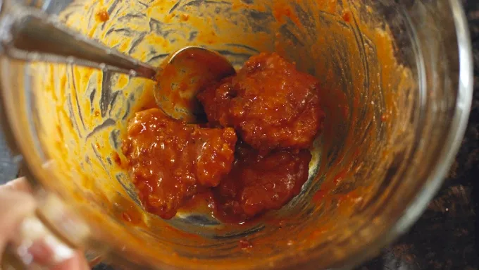 Step3Mix the sauce by stirring together the sriracha, butter, maple, mustard, and soy sauce. When the chicken has slightly cooled, toss in the sauce to coat.