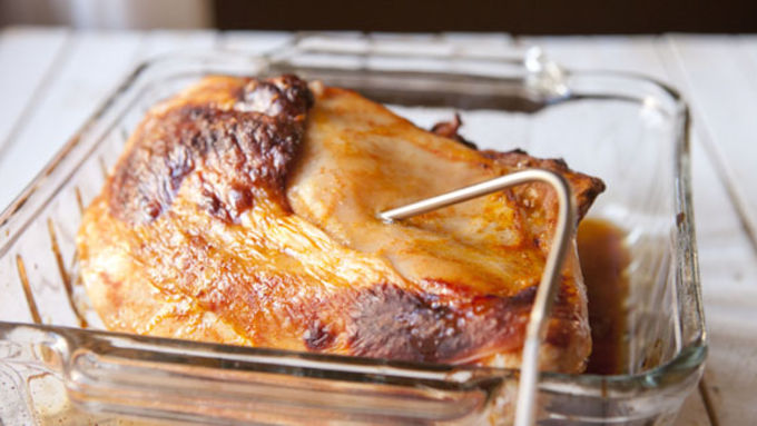 Step7When turkey reaches the goal temperature, remove from oven and loosely cover with foil. Let rest for 10 minutes.