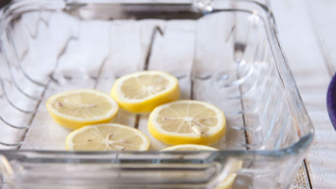 Step3When ready to roast the breast, preheat oven to 450°F. Slice a large lemon into coins and put them in the bottom of a baking dish.