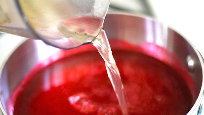 Combine a small package of strawberry gelatin and 1 cup of water. Heat on the stove until the gelatin has dissolved. Stir in 1/2 cup rum, 1/4 cup Grand Marnier™ (or triple sec) and 1/4 cup fresh squeezed lime juice. Set aside.