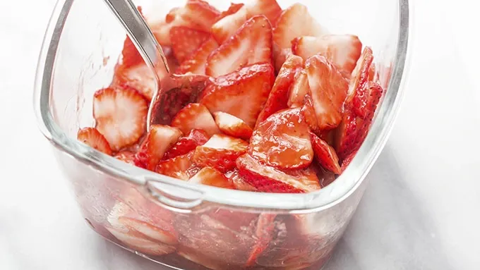 Step1In a large microwave-safe jar, heat jam until melted, about 60-90 seconds. Stir in strawberries. Set aside.