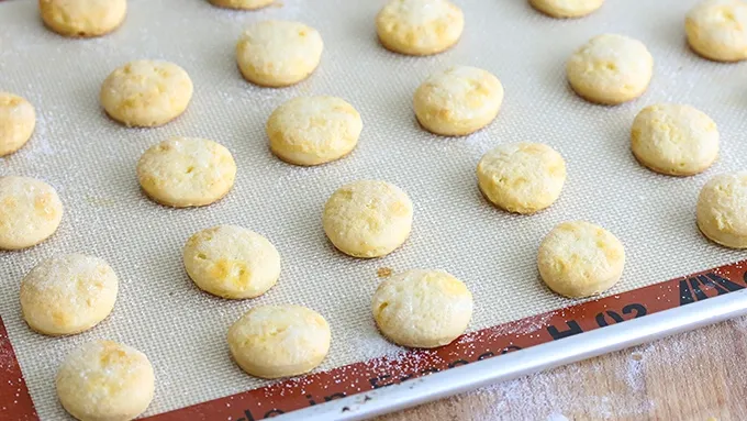 Step3Place them on a nonstick cookie sheet and repeat for remaining biscuits.
