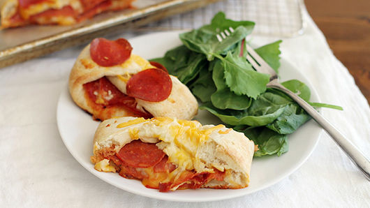 For a vegetarian version, swap pepperoni for spinach, peppers, mushrooms and/or olives.