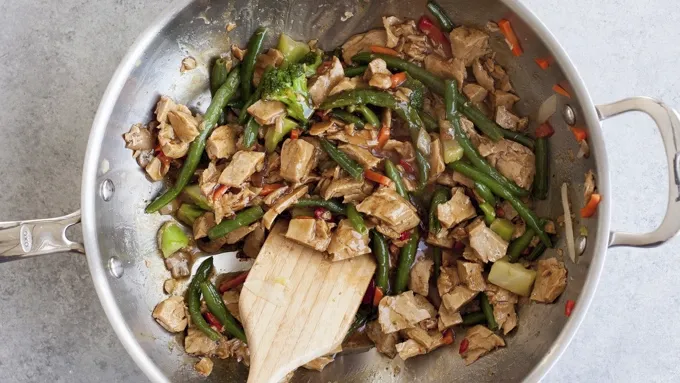 var configuration = {"title":"Super-Fast Chicken Teriyaki Stir-Fry","introduction":"This basic recipe for a teriyaki stir-fry is totally customizable—use chicken, beef or even tofu—and it\u0027s made super easy thanks to pre-cut, frozen stir-fry veggies from Cascadian Farms™.","servingSize":"1 Serving","image":{"small":{"media":"(min-width: 0px)","src":"https://mojo.generalmills.com/api/public/content/-kxGmWawG0aFd4i3bnxBDQ_webp_base.webp?v=26a06e8c\u0026t=e724eca7b3c24a8aaa6e089ed9e611fd"},"medium":{"media":"(min-width: 500px)","src":"https://mojo.generalmills.com/api/public/content/-kxGmWawG0aFd4i3bnxBDQ_webp_base.webp?v=26a06e8c\u0026t=191ddcab8d1c415fa10fa00a14351227"},"large":{"media":"(min-width: 767px)","src":"https://mojo.generalmills.com/api/public/content/-kxGmWawG0aFd4i3bnxBDQ_webp_base.webp?v=26a06e8c\u0026t=191ddcab8d1c415fa10fa00a14351227"},"alt":"Super-Fast Chicken Teriyaki Stir-Fry"},"contributor":{"label":"by:","name":"Wholefully","profileUrl":"/contributors/wholefully","displayDate":{"label":"Updated","date":"Sep 8, 2017"}},"ingredientGroups":[{"name":"For the Teriyaki Sauce","ingredients":[{"quantity":"1/2","description":"cup low-sodium soy sauce"},{"quantity":"1/3","description":"cup honey"},{"quantity":"2","description":"tablespoons rice wine vinegar"},{"quantity":"","description":"Pinch of red pepper flakes"},{"quantity":"1/2","description":"teaspoon garlic powder"},{"quantity":"1/2","description":"cup water"},{"quantity":"1","description":"tablespoon cornstarch"}]},{"name":"For the Stir-Fry","ingredients":[{"quantity":"1","description":"tablespoon canola oil"},{"quantity":"2","description":"cups cooked chopped chicken"},{"quantity":"1","description":"bag (10 oz) Cascadian Farm™ Organic Chinese-Style Stirfry Blend frozen vegetables"},{"quantity":"","description":"Cooked rice, additional soy sauce, green onions and sesame seeds, for serving"}]}],"steps":[{"description":"To make the teriyaki sauce, combine the soy sauce, honey, rice wine vinegar, red pepper flakes and garlic powder in a medium saucepan over medium high heat. Bring to a boil.","stepShotImageUrl":"//mojo.generalmills.com/api/public/content/E5D5qPSSNEOpUr-E9-C0tQ_webp_base.webp?v=3217e10f\u0026t=3653fe2f5ecd4a47a5a51c97e429947c"},{"description":"Whisk together the water and cornstarch, and add it to the boiling soy sauce mixture. Simmer until just thickened, about 2 minutes. Remove from heat, and set aside."},{"description":"Heat the canola oil in a wok or large skillet over high heat. Add in chicken and sauté just to warm and slightly brown, about 1 minute.","stepShotImageUrl":"//mojo.generalmills.com/api/public/content/HsrsW_dJ-02R1e4TJ7zLbA_webp_base.webp?v=38066428\u0026t=3653fe2f5ecd4a47a5a51c97e429947c"},{"description":"Add in the frozen veggies, and sauté until warmed through and tender, about 5 minutes.","stepShotImageUrl":"//mojo.generalmills.com/api/public/content/pHLnmtNlfkCWwTT199_UVw_webp_base.webp?v=c7d8288a\u0026t=3653fe2f5ecd4a47a5a51c97e429947c"},{"description":"Remove from heat, and pour the sauce over the veggies and chicken. Toss to coat.","stepShotImageUrl":"//mojo.generalmills.com/api/public/content/qXQC8nQebUiMYEQEHcx7nA_webp_base.webp?v=bf53d365\u0026t=3653fe2f5ecd4a47a5a51c97e429947c"},{"description":"Serve over rice and top with additional soy sauce, green onions and sesame seeds, as desired. Yields about 1 cup of stir-fry per serving."}],"tips":[{"title":"","description":"You can sub in whatever oil you want to stir-fry in, just make sure it has a high smoke point. Peanut oil, avocado oil and grapeseed oil are all good options.","category":"Recipe/Ingredient Facts","tipShots":[]},{"title":"","description":"Chicken thighs will give you the best flavor. Or, to really save time, use a rotisserie chicken or packaged chicken strips from the deli of your local supermarket.","category":"Recipe/Ingredient Facts","tipShots":[]},{"title":"","description":"Not a chicken fan? Sub in beef, shrimp or even tofu to make your perfect stir-fry.","category":"Substitution","tipShots":[]},{"title":"","description":"Love veggies? Add in a second bag of Cascadian Farm™ Organic Chinese-Style Stirfry Blend frozen vegetables.","category":"Variation","tipShots":[]},{"title":"","description":"White rice takes about 15 minutes to cook, so if you want to serve your stir-fry on top of that, start cooking your rice before you start the stir-fry. Or check the frozen food section of your supermarket for premade rice that you just nuke for a few minutes to warm. Easy peasy!","category":"Recipe/Ingredient Facts","tipShots":[]},{"title":"","description":"Kitchen shortcuts are one of my favorite things in the whole wide world. When you learn a new (and maybe even better) way to accomplish something quickly in the kitchen? That feels like such a victory! My current favorite time saver: Cascadian Farms™ Organic Chinese-Style Stirfry Blend vegetables. It’s like cutting out a full hour worth of veggie chopping without sacrificing any flavor or nutrition. WIN.\r\n\r\nThis stir-fry recipe is great because it gives you the easy teriyaki sauce recipe (so easy), and you can go about customizing it for your tastes from there. Keep it veggie by adding tofu instead of chicken. Use beef for a heartier meal. Serve it on top of quinoa. Add more red pepper flakes for a bigger kick. Pump up the veggies with whatever you have in your fridge. Make this recipe your own!\r\n\r\nThe teriyaki sauce itself is a great one to keep on hand for all kinds of uses. It’s wonderful slathered on chicken or kebabs on the grill. If you have any extra sauce, it’ll keep in an airtight container in the fridge for 7-10 days.","category":"Editorial","tipShots":[]}],"kitchenTips":[{"title":"","description":"You can sub in whatever oil you want to stir-fry in, just make sure it has a high smoke point. Peanut oil, avocado oil and grapeseed oil are all good options.","category":"Recipe/Ingredient Facts","tipShots":[]},{"title":"","descrip