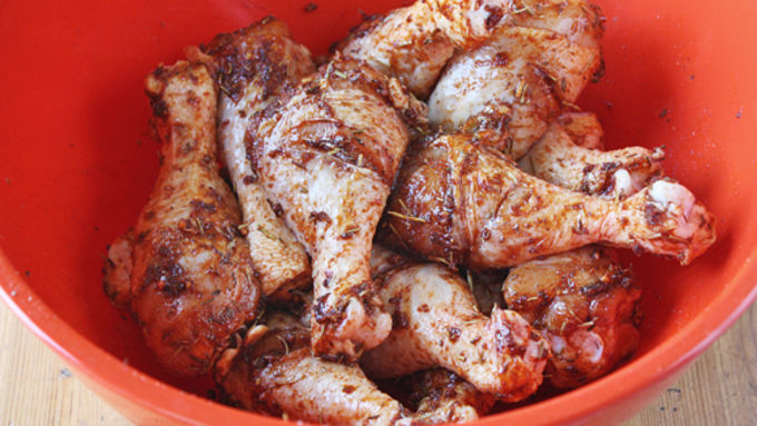 Step2In a large bowl or plastic bag, whisk together paprika, dried thyme, dried rosemary, salt, onion powder, minced garlic, chili powder, pepper and brown sugar. Add chicken and rub mixture into skin. Place chicken in bowl or sealed bag in refrigerator and let rest at least 4 hours or overnight.