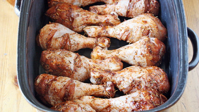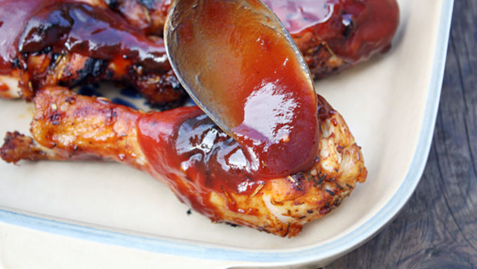 Oven-roasted and grilled drumsticks with a tangy, sweet and savory homemade barbecue sauce.