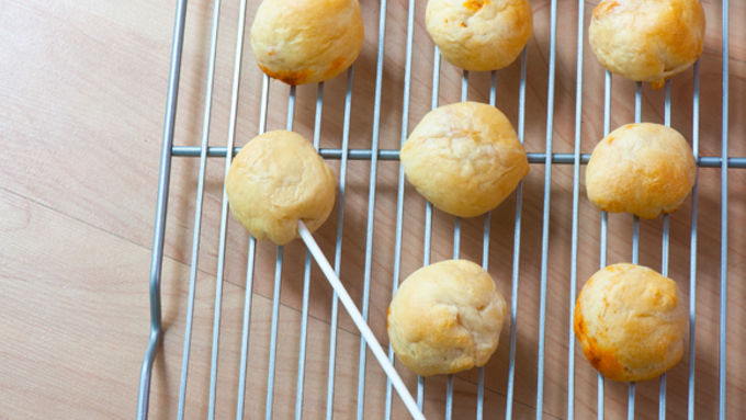 Step5Allow to cool for a few minutes, then insert a lollipop stick into each.