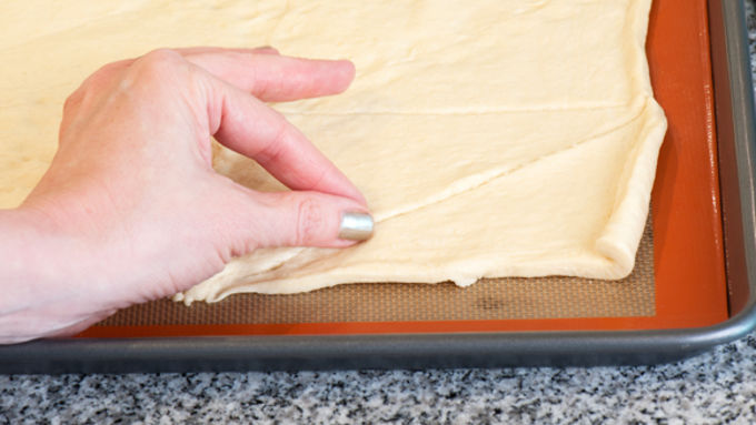 Step2Roll out the crescent roll dough in a sheet, and just pinch the precut edges back together.