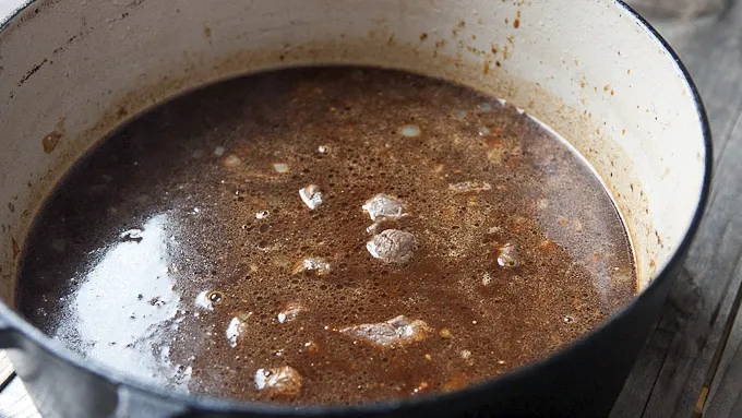 Place a large Dutch oven over medium-high heat. Add 3 tablespoons vegetable oil and brown beef in 2 batches until it's browned on all sides, 8-10 minutes per batch. Remove beef and set aside.