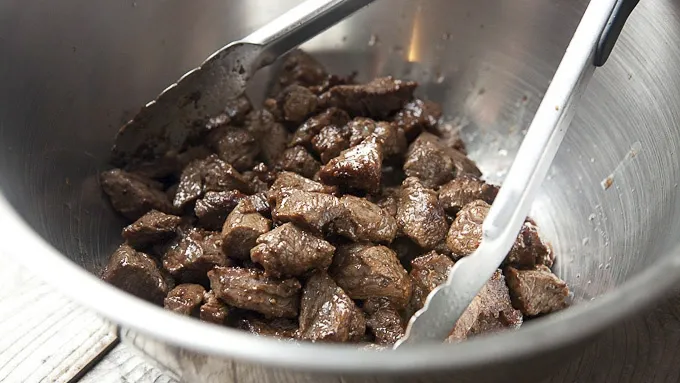 - 2 1/2 lb boneless beef chuck roast, cut into 1/2 to 3/4-inch cubes