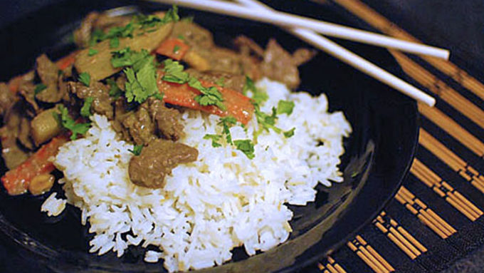 Step7Cook until warmed throughly and serve over jasmine rice.
