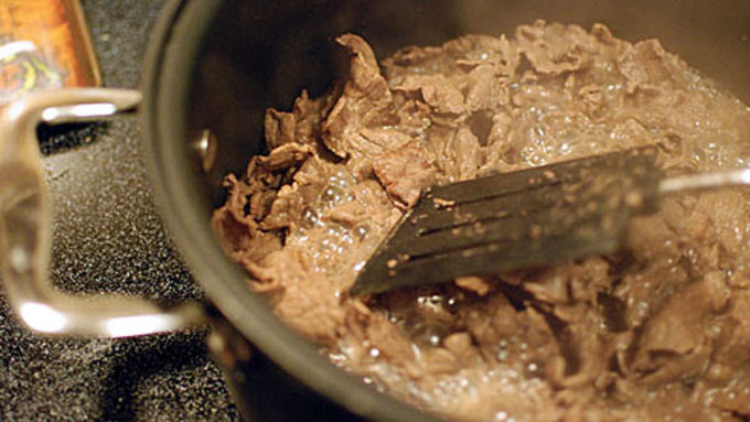 Step3In a hot pan, add the beef. Stir and cook until browned.