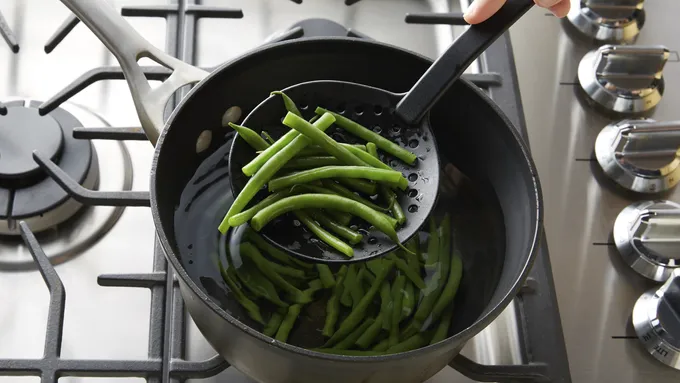 In 2-quart saucepan, heat 3 cups water to boiling; add salt. Add beans; boil 2 to 3 minutes or until bright green and crisp-tender. Remove from boiling water, and place in ice water until cold. Drain; reserve in refrigerator until ready to use.