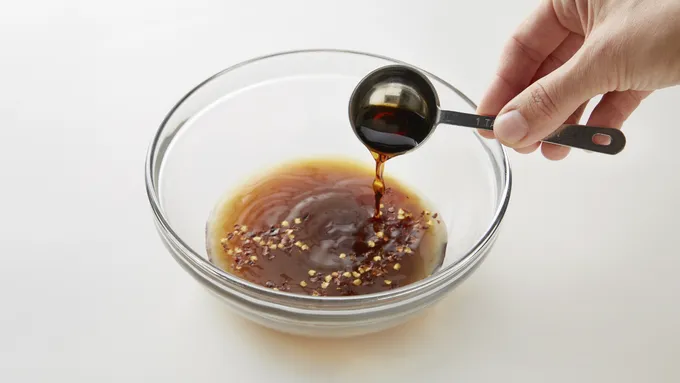 Meanwhile, in small bowl, mix remaining 3 tablespoons lime juice, remaining 2 tablespoons soy sauce, 2 tablespoons water, the fish sauce, sugar and pepper flakes with whisk.
