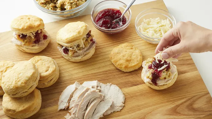 One of the best things about a big turkey dinner is the leftovers that follow. Grab a can of Pillsbury™ Grands!™ biscuits and transform those leftovers into a cheese-filled turkey sandwich to rival all other turkey sandwiches. Dare we say these biscuit bites are tastier than the actual Thanksgiving dinner itself?