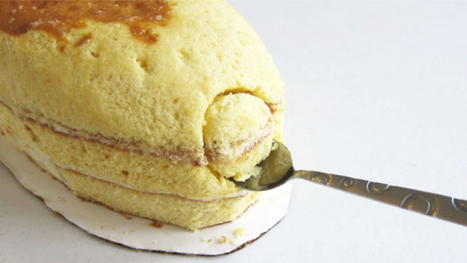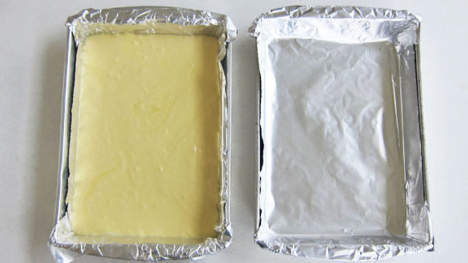 Step1Mix one Betty Crocker™ Super Moist™ yellow cake mix according to package instructions, swapping out whole milk for the water. Fill a 9 by 13 baking pan with batter. For ease of removal, line the baking pans with non-stick aluminum foil. Repeat, making a total of three 9x13 cakes. Bake cakes according to package instructions. Remove cakes from oven and allow to cool completely.