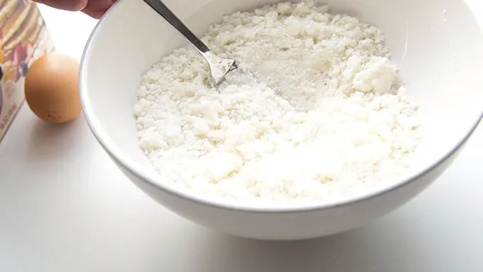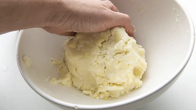 Step2Add egg to mixture, using a fork to work it evenly into the crumbs. Add water to the dough, stir until well mixed, then gather the mixture into a ball with your hands. If the dough isn’t sticking together, add teaspoons of water until the dough is no longer dry.
