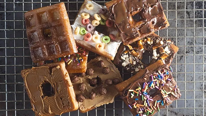 Two breakfast favorites get combined in these decadent waffle donuts! You can top them with all kinds of goodies, but our favorites include cookie butter, chocolate hazelnut spread, and a powdered sugar glaze.