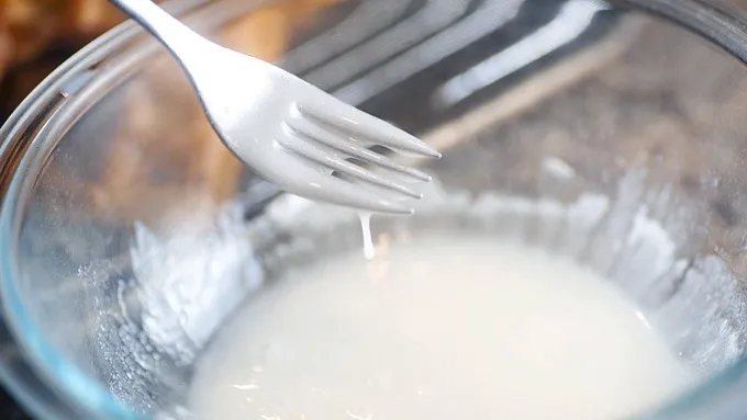 Step8To make glaze, whisk together the powdered sugar and milk. Dunk some of the wonuts into the glaze.