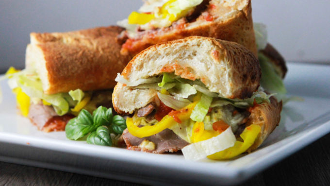 - Just like delish toasted subs from sub-shops, this unbelievably flavorful sammy is easy to make right at home! If you've got a can of my favorite Pillsbury™ product evs -- Pillsbury™ Simply French Bread -- then you're just minutes away from the ultimate Toasted Roast Beef Sandwich. Just cook up that loaf of bread, then layer it with (are you ready for this? Prepare your mind for blowing) a nice slather of spicy salsa, a half-pound of roast beef, layers of Pepper Jack cheese (I know, right? I tried to warn you!) and banana peppers all up in the business on top. Then you toast it all in a hot oven until… Oh, guys. I told you to get prepared. But, it no amount of preparation can ever prepare you for this absurdly simple delight, coming fresh and hot from your oven. Cheesy. Pleasy. Gotta have some for me-sy. There. See? I'm officially outta my mind for this little sandwich dealio. Wanna bite?