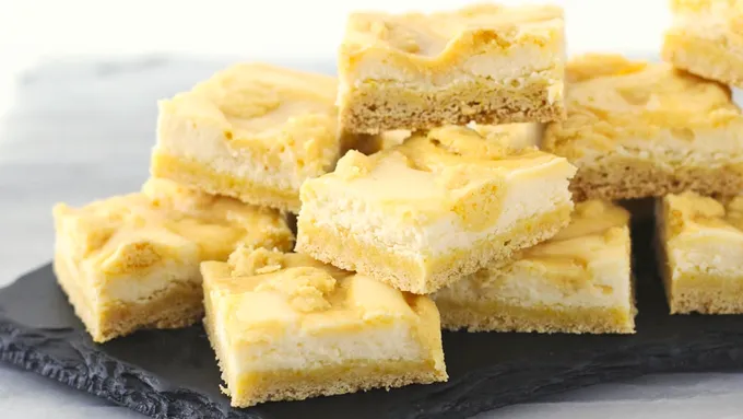 This is a version of Pillsbury's™ Berry-Lemon Cheesecake Squares recipe. It's DELISH and fun for guests. The substitution of purchased lemon curd for the cheesecake filling makes it quicker to make.