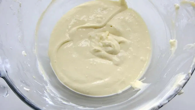 Step3To make the cheesecake filling, start by beating the cream cheese and sugar together until light and fluffy. Add 2 eggs and beat until well combined. Stir in 2 tablespoons of lemon curd to add just a touch of lemon flavor to the cheesecake filling.