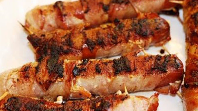 - If you’re a fan of fancy food or looking for a ladies’ brunch idea, please avert your eyes! Don’t say you weren’t warned… If you want some super hearty food for your next football or tailgating party, love hot dogs and love bacon, you’re reading the right post. I’ve heard it said that bacon is a pig’s way of saying “I love you,” and I completely agree. So, we’re doubling up on the pork for one seriously amazing hot dog! The crispy bacon coating combined with just a touch of brown sugar really gives them an amazing flavor. You can broil or grill these little bundles of joy -- both ways are delish! Serve on hot dog buns with your favorite condiments. Enjoy!