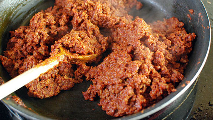 Step1Make the filling: Grate your onion and garlic to a paste. Brown the turkey in a hot pan. When it is fully cooked and brown, add the onion. Cook on medium about 5-10 minutes to cook the onion. Add the garlic and cook 1 minute. Next, add the tomato paste and cook 5 minutes, stirring often. Remove from heat and allow to cool. Finally add the parmesan cheese and mix well.