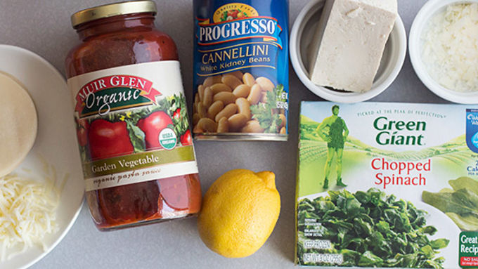Step2Make the ‘ricotta’ by combining the tofu, garlic powder, milk, lemon juice, Parmesan, salt, and pepper in blender or food processor and pulsing until the mixture turns into a ricotta consistency. Set aside. (If you prefer you can skip the tofu and just use real ricotta.)