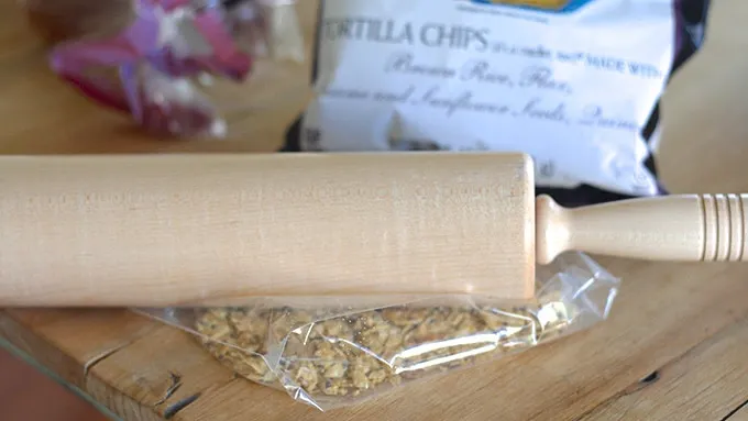 Step1Place chips in a resealable plastic bag and crush using a rolling pin.
