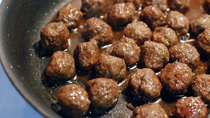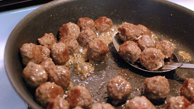 Step4Brown the meatballs in a hot frying pan. When they are fully browned, remove from the pan. Don't clean out the pan.