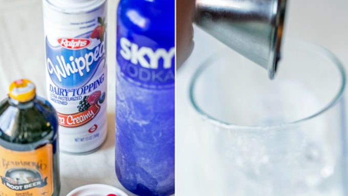 A vodka and root beer combination, topped with whipped cream and garnished with a cherry. To add a twist to the classic root beer float, throw in a scoop of vanilla ice cream. Delicious!