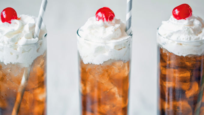 Step2Top off with chilled root beer. Add 2-3 tablespoons of whipped cream to the top of each drink, then place a cherry on top.