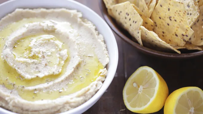 A creamy dip made from cannellini beans that is perfect for dipping pita chips, carrots, celery, or jicama. Garlicky and full of herbs, you would never know that this dip is good for you.